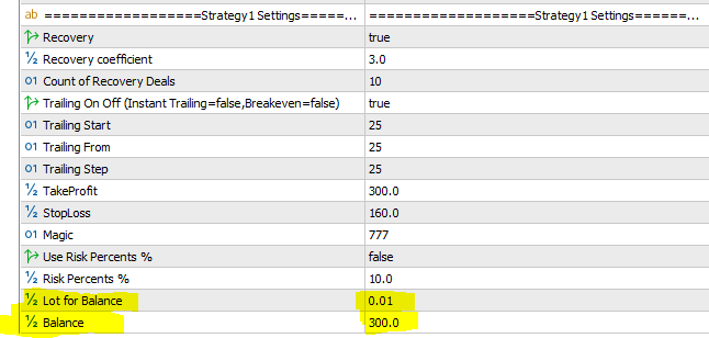 For instance, your deposit is $1,000. You set the Steadiness danger parameter to 300. This implies the danger will probably be calculated as follows: 1,000 / 300 x 0.01. The buying and selling lot will probably be 0.03