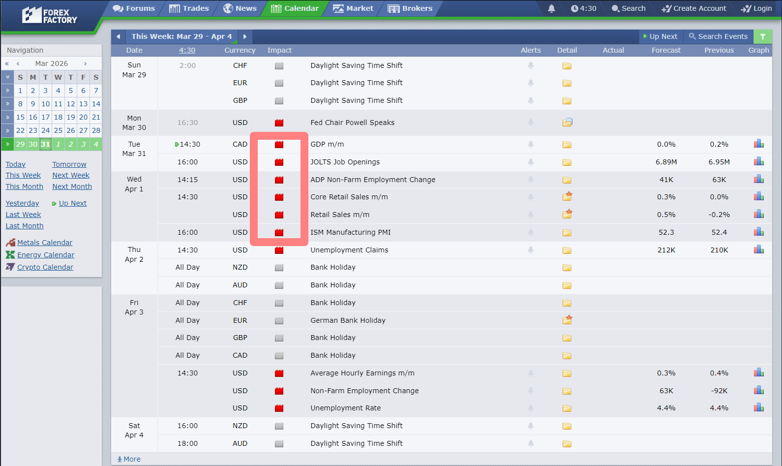 One of many easiest methods to cut back weak entries primarily based on Owl Good Ranges alerts is to filter them upfront utilizing a information calendar. There are many information releases out there, however not all of them really influence worth motion. That’s the reason it’s essential to grasp which occasions matter earlier than coming into a commerce, how they’ll have an effect on market construction, and when even a robust sign is healthier ignored.