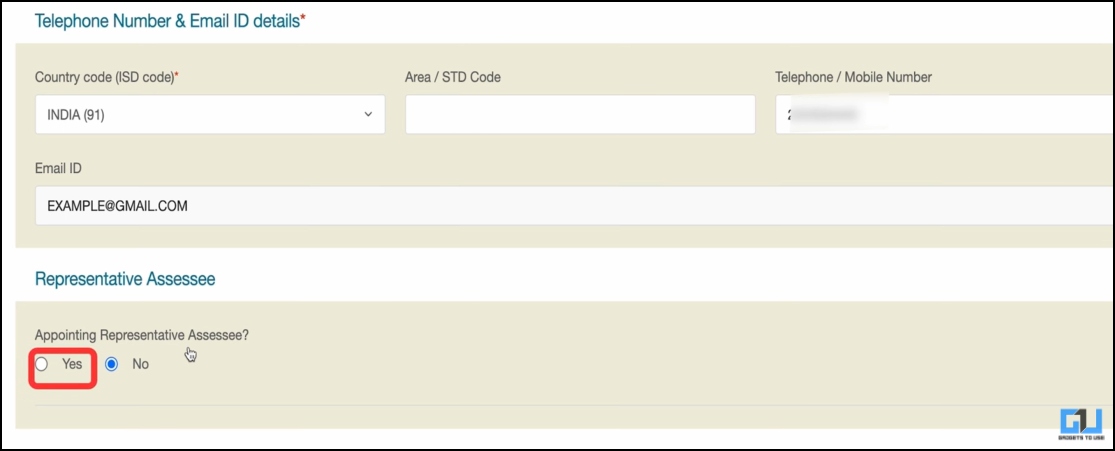 7. Below Consultant Assessee, choose ‘Sure’ and add the main points of the guardian or guardian, comparable to title, title, and handle. Now click on ‘Subsequent’.
