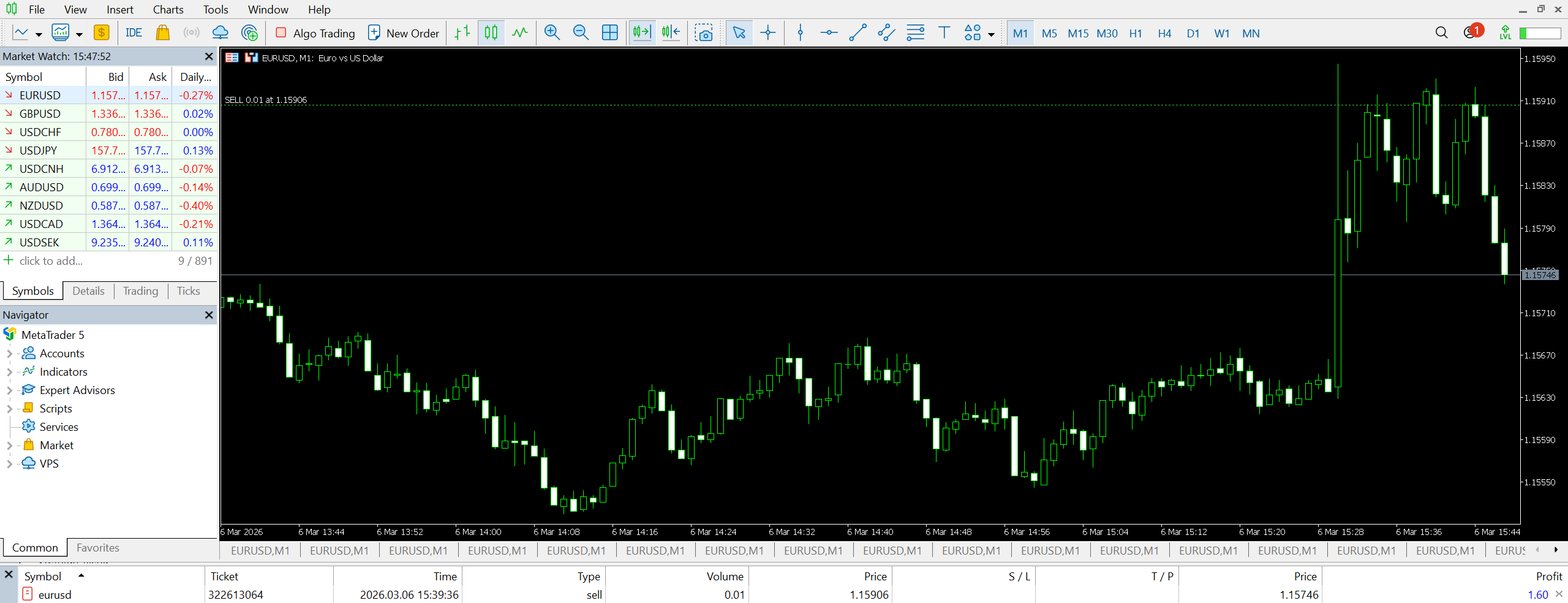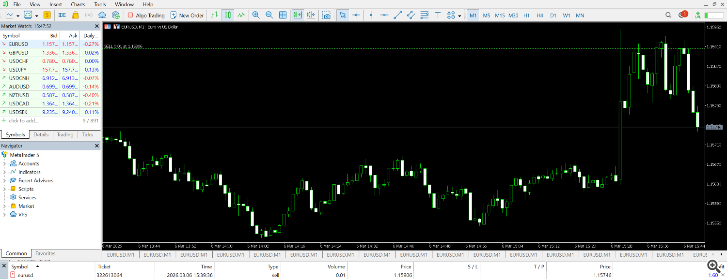 EUR/USD commerce from March sixth NFP launch – Entry at 1.15906, capturing the downward transfer after preliminary volatility
