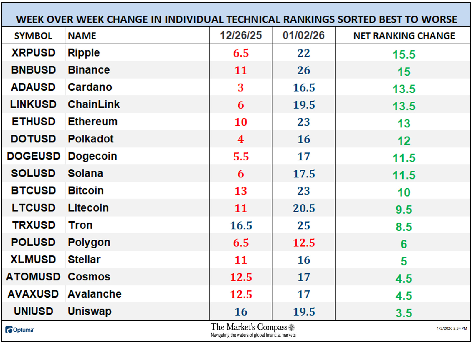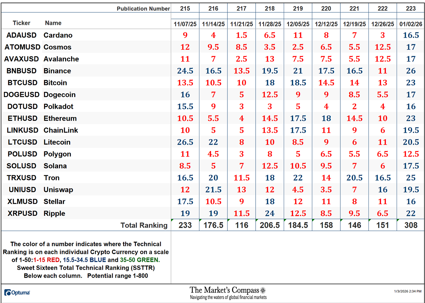 *The technical rating system is a quantitative strategy that makes use of a number of technical concerns that embody however should not restricted to development, momentum, measurements of accumulation/distribution and relative energy. The TR of every particular person Cryptocurrency can vary from 0 to 50.