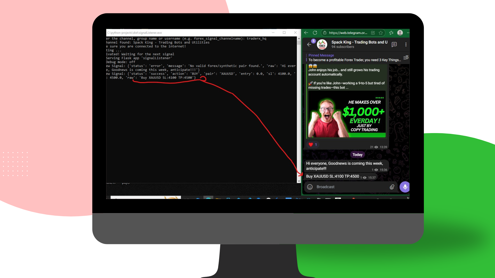 - Sign Listener: is answerable for studying all of the message despatched to the channel/group you’ve got already chosen then parse detected sign to the EA