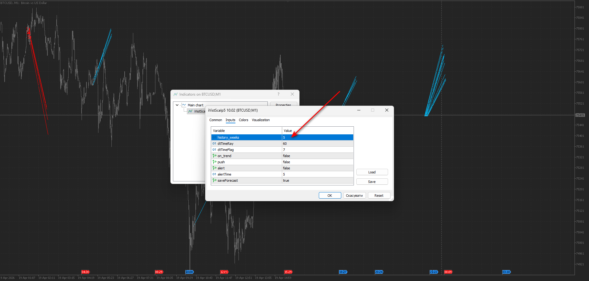History_weeks – iVISTscalp5 indicator calculation parameter relying on the buying and selling week quantity