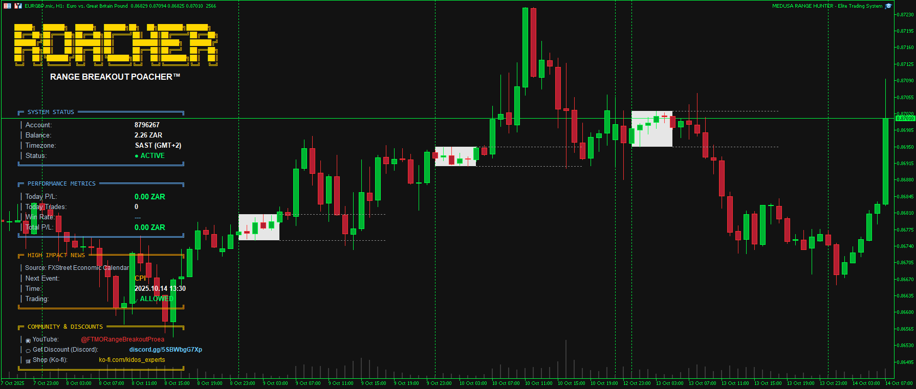 The EA identifies low-volatility value ranges, measures their energy, and executes breakout trades within the course of momentum.